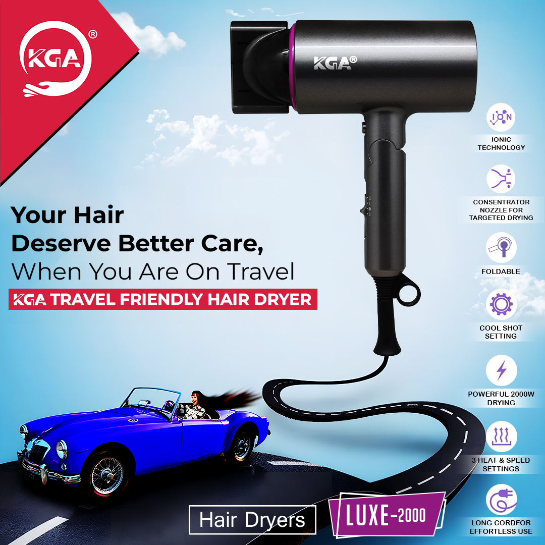 - FOLDABLE HANDLE - KGA Hair Dryer is readily portable and foldable for storage. You can transport your KGA hair dryer in your handbag or luggage easily during travels.