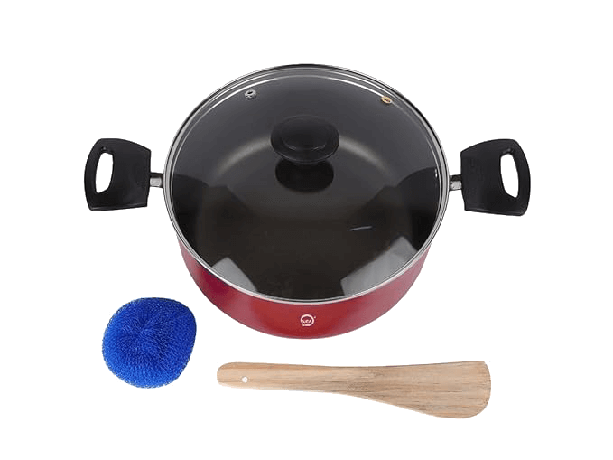 - Pearl Red 3 Layers Reinforced Non-Stick Coating, 2L, 2.5L, 3L, 3.5L, 4L