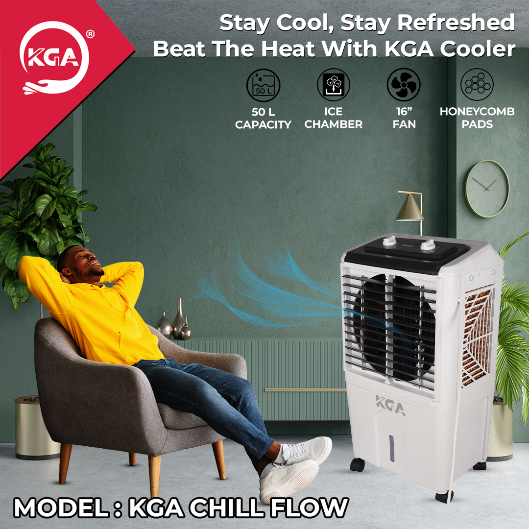 Advanced Cooling Technology: Utilizing honeycomb pads, the KGA Ice Cool Cooler maximizes cooling performance while minimizing energy consumption, providing you with cost-effective and eco-friendly cooling solutions.