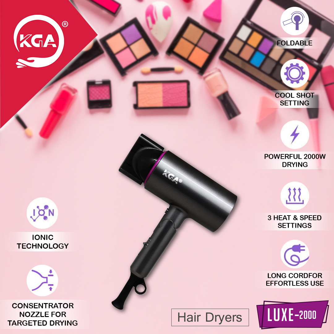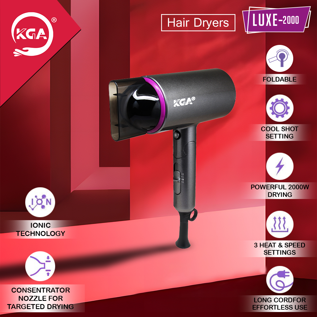 - FOLDABLE HANDLE - KGA Hair Dryer is readily portable and foldable for storage. You can transport your KGA hair dryer in your handbag or luggage easily during travels.